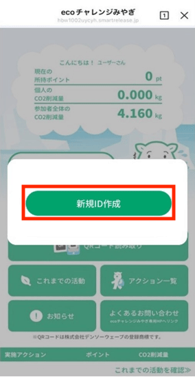 ミニアプリで簡単なアンケートに回答いただいたのち、「新規ID作成」をタップし登録完了です!